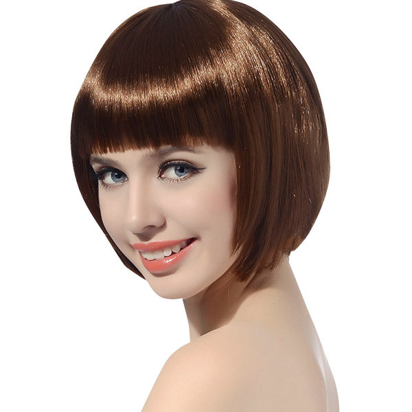 ●明るく可愛い印象を与えるブラウンカラー●愛され系コケティッシュボブ●前髪パッツンスタイル。