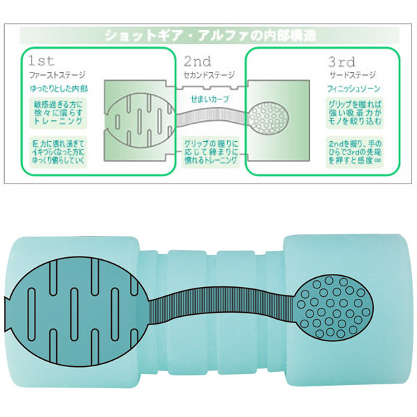メリハリのある3つのゾーンで異なる刺激を味わえるオナホール!アルファは初心者の方でも使いやすく快感を得やすい鍛錬型タイプです。
