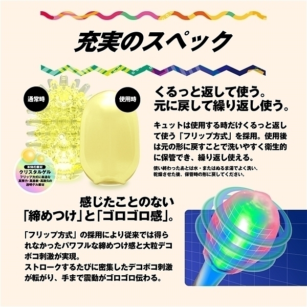 「Qutto−キュット−」は従来よりも突起が大きく、肉厚になった大粒のデコボコ刺激を搭載。