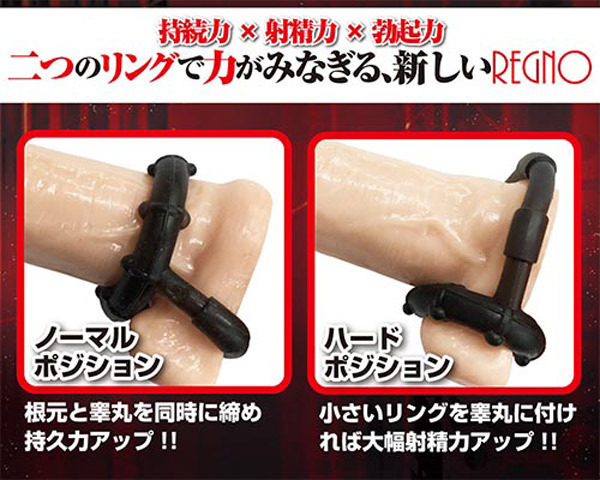 Wリングで根元を同時締め!持続力×射精力×勃起力をサポートするペニスリング「レグノ Wエナジーリング」。