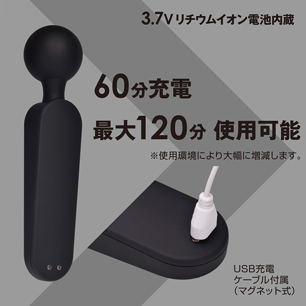 仕様:パッケージ:26.4×7.3×5.5cm 本体:全長21.3cm・ヘッド直径4.5cm 重量:150g USB充電式