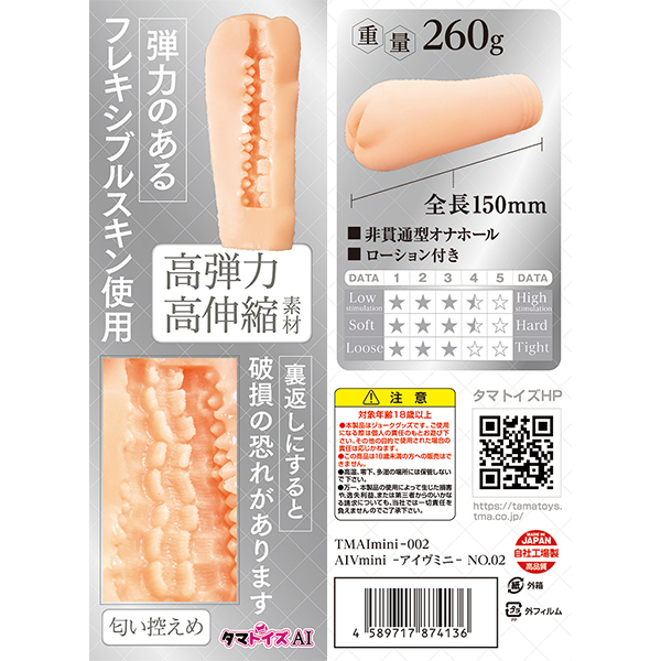 圧倒的な刺激を提供するために設計された、コンパクトながらも高性能なオナホール♪非貫通タイプでありながら、内側の構造は非常に工夫されています!上部には鋭い山型突起が密集しており、強烈な刺激を与える仕組みになっています♪下部には2本のミゾ付き縦ヒダが配置されており、裏スジを的確にガイドし、擦り上げる感覚を提供します!高弾力で高伸縮性のあるフレキシブルスキンを採用しており、快適な使用感を約束します♪上下で異なる2つの刺激が楽しめるため、使用者は飽きることなく、毎回新鮮な体験を得ることができます!コンパクトなのでハンドリングがしやすく、手軽に使用できるのも魅力の一つ♪品質とヌキ性能を兼ね備えたこのオナホールは、一度使えば手放せなくなること間違いなし!サラサラのローションとの相性も抜群で、より滑らかな使用感を楽しむことができます♪あなたのプライベートタイムを格上げする最高のパートナー!是非お試しください♪●メーカー型番:TMAImini-002