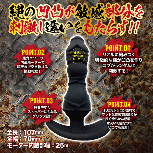 敏感な部分を強力な振動と独特な凸凹が刺激して悶絶必至♪4.5Vの強力パワー&10ファンクションシステム搭載&100%シリコンの強力イカセプラグ!抜き差しして楽しむも良し、挿れっぱなしでバイブ機能を堪能するも良しの優秀バイブです。