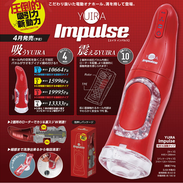 圧倒的な吸引力が自慢!使い捨てオナカップシリーズ・YUIRAブランドから初の電動オナホが登場(ユイラ インパルス)。