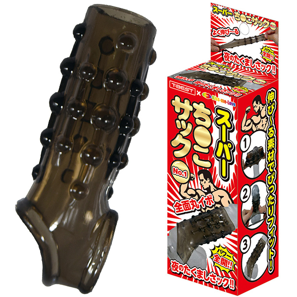 夜もがんばリング、で大人気のやわらかメンズリング「ち●こリング」シリーズに、スーパーなサックが新登場!今度のち●こサックは「ベースに装着するメンズサック」!ぷにぷにっとした柔らかなTPE(エラストマー)素材は、ぐい〜んとよく伸びる高伸縮性!サイズ問わずでどんな大きさでもしっかりフィットの抜群の装着感&締付感!さらに、ツンツンとしたトゲトゲ突起による高刺激快感が!男らしさを引き立たせるスモークカラー!「No.1」は、刺激高めにぐるっと配置された全面丸イボ突起!規則的に並んだ大小丸イボがアナタをスーパーに変身させるはず!ほとばしるストロング、みなぎるパワー!